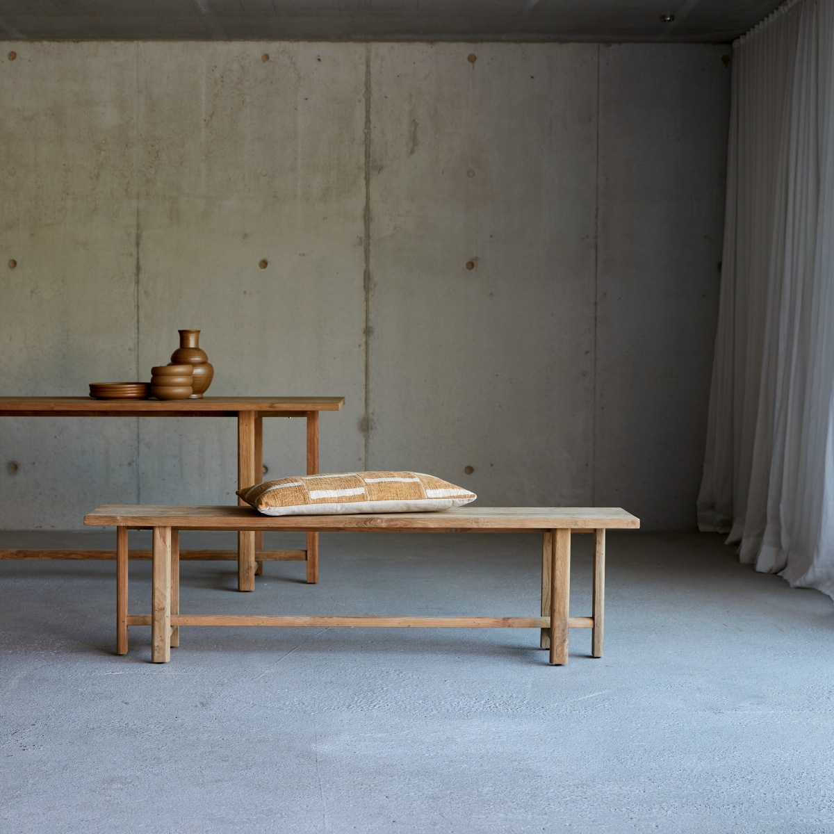 Le banc en teck massif recyclé Antonia complète idéalement notre table de la même collection : il compose alors un ensemble de repas d’inspiration neo-ethnique, très agréable à vivre au quotidien. S’il séduit par ses lignes minimalistes, l’élégance de son piétement et son toucher légèrement reliéfé, on l’aime aussi pour son esprit upcycling complétement dans l’air du temps.