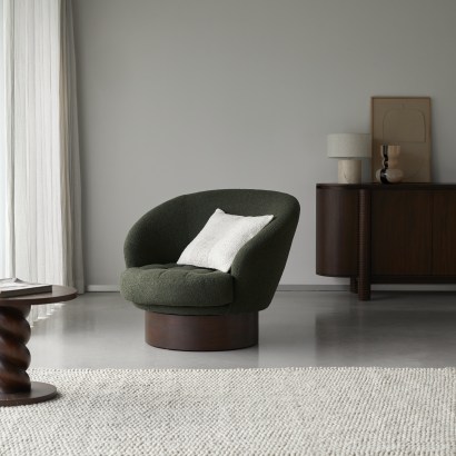 Fauteuil pivotant en Mindi et tissu vert