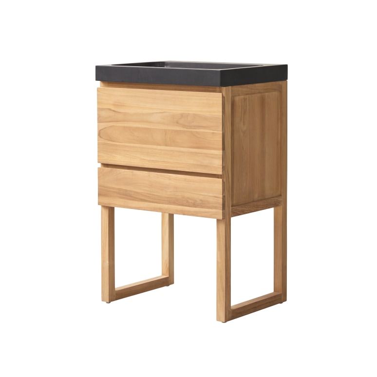 Meuble salle de bain en teck massif et pierre de lave 60 cm