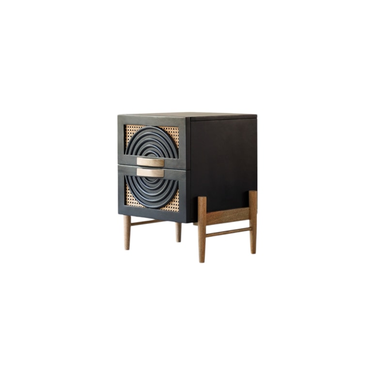 Chevet en manguier massif noir et rotin