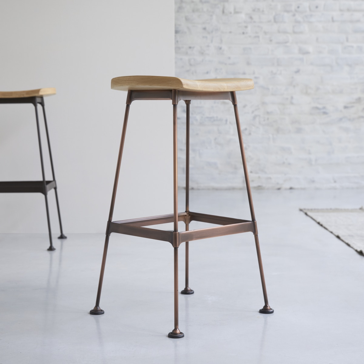 Tabouret haut en frêne et métal