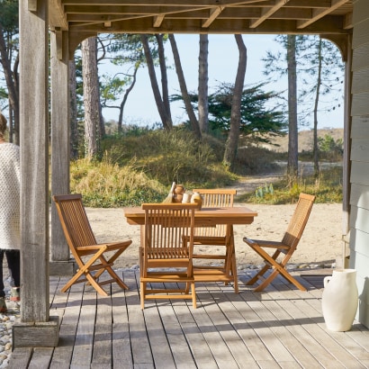 Massief acaciahouten tuinset met 4 stoelen