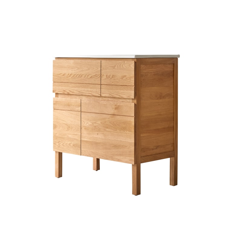 Massief eikenhouten en keramisch badkamermeubel 80 cm