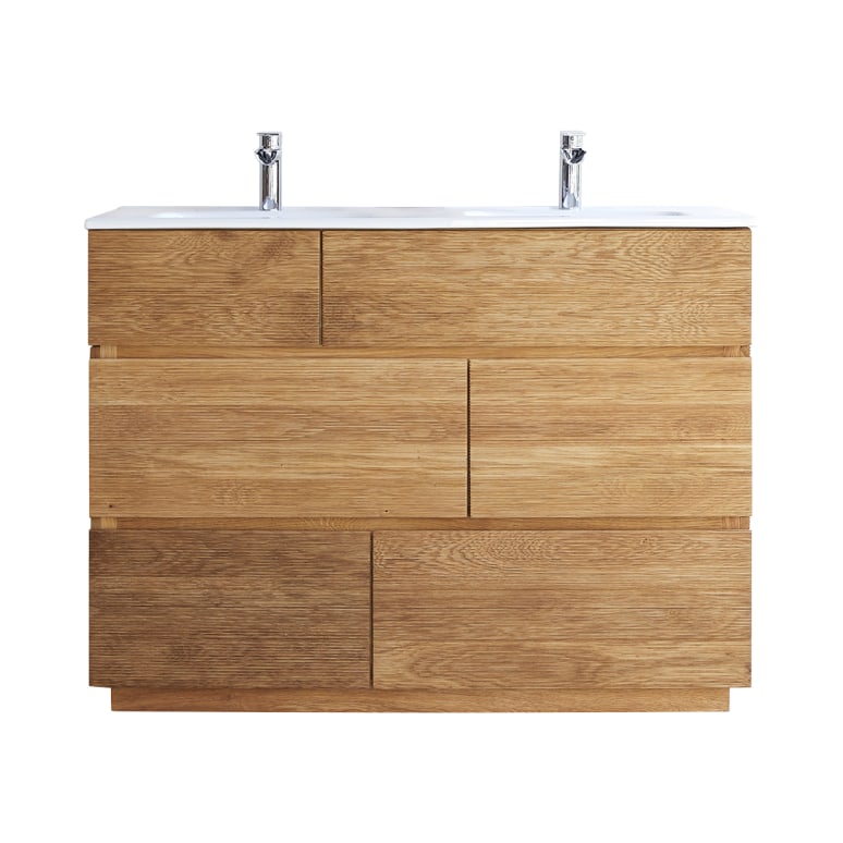 Massief eikenhouten en keramisch badkamermeubel 120 cm