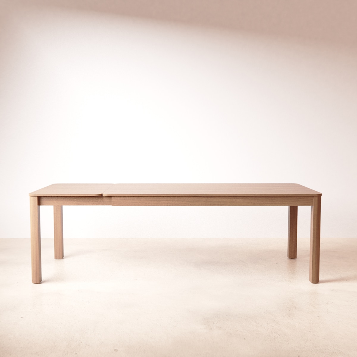 Tafel van 180 cm + verlengblad van 60 cm (2 verlengbladen opgeborgen in de tafel).