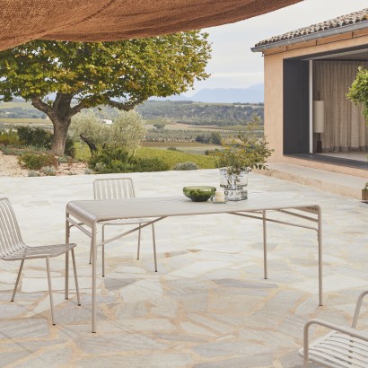 Rechthoekige tuintafel in crèmekleurig metaal voor 4/6 personen