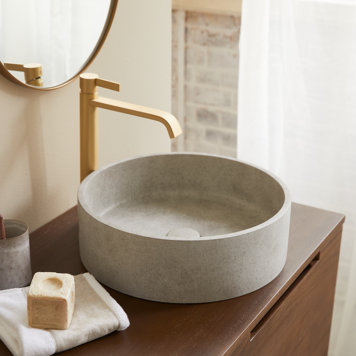 Ronde waskom in grijs beton