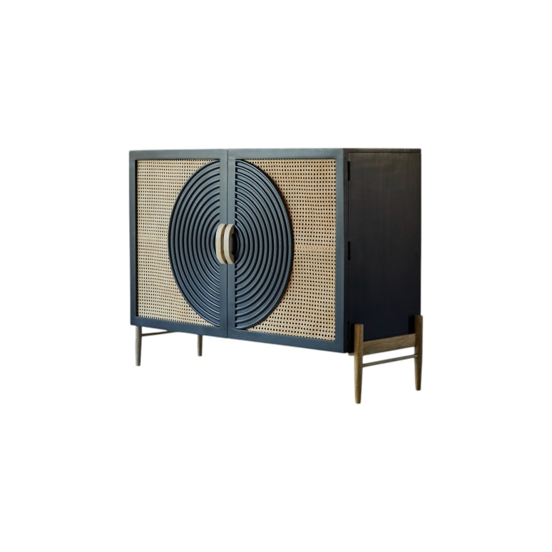 Buffetkast van massief zwart mangohout en rotan 115 cm