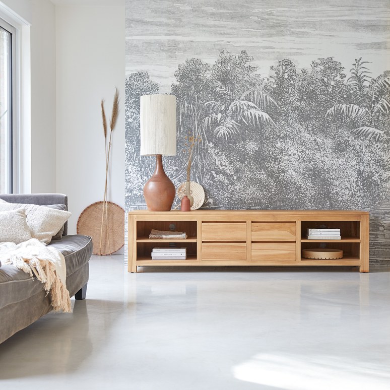 Tv-meubel van massief teakhout en premium terrazzo 175 cm